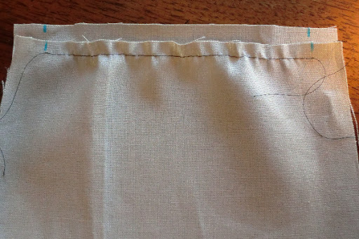 Use the parallel lines gathering method to sew two rows of long basting stitches along the easing line. Leave long thread tails.