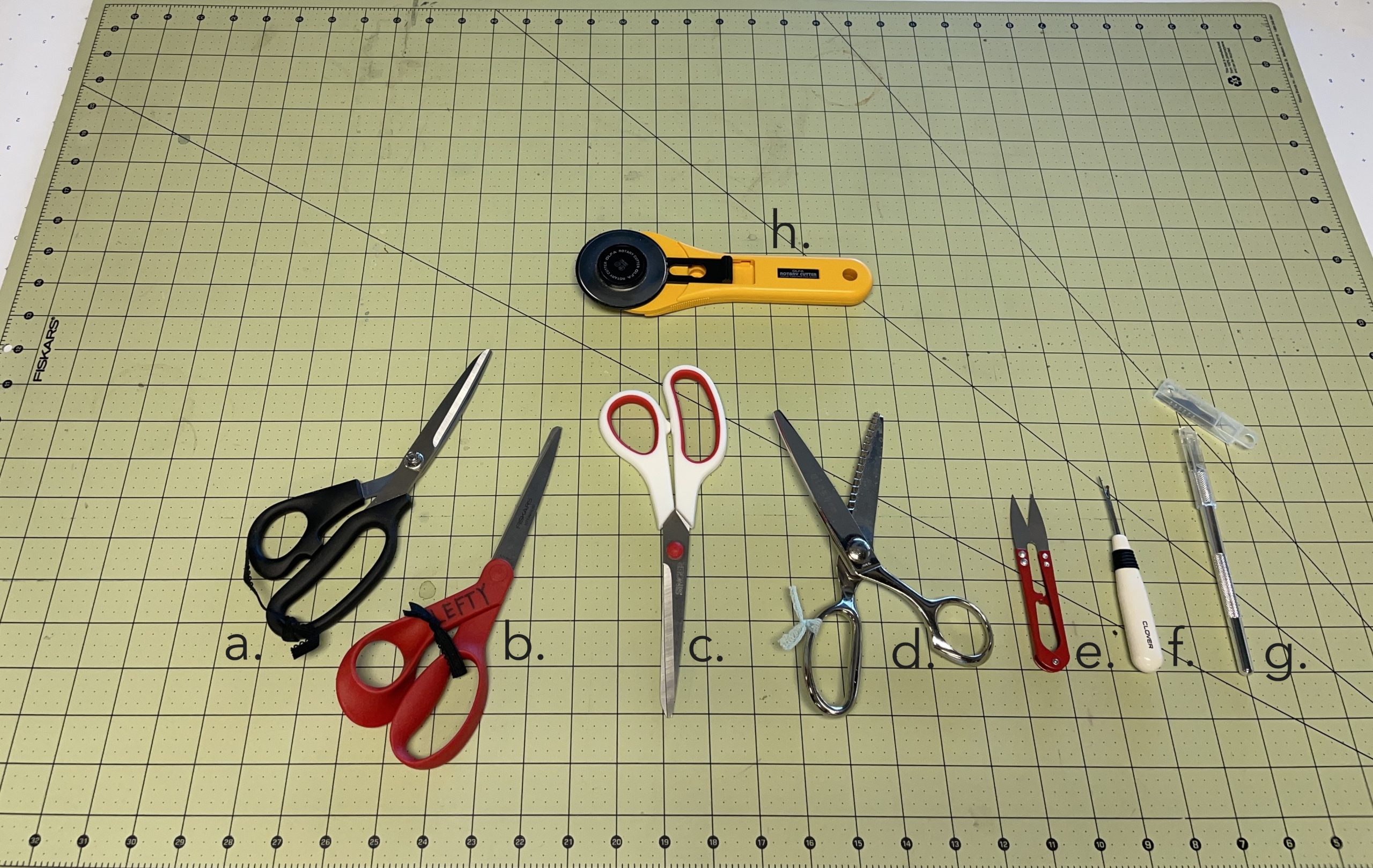 💡Tip: In the CMU Costume Shop Fabric Scissors are denoted by a ribbon on the handle and should not be used to cut anything but fabric.