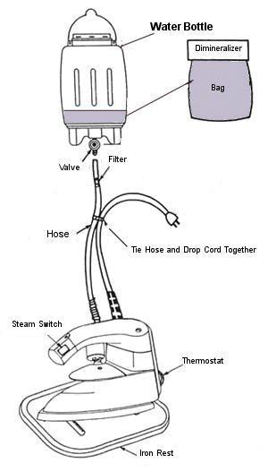 Description: A heavy-duty iron designed for continuous professional use. It features a separate water reservoir (usually hanging above the workstation) that feeds water to the iron by gravity for steam production. It provides consistent heat and powerful steam for pressing large or heavy costumes efficiently.