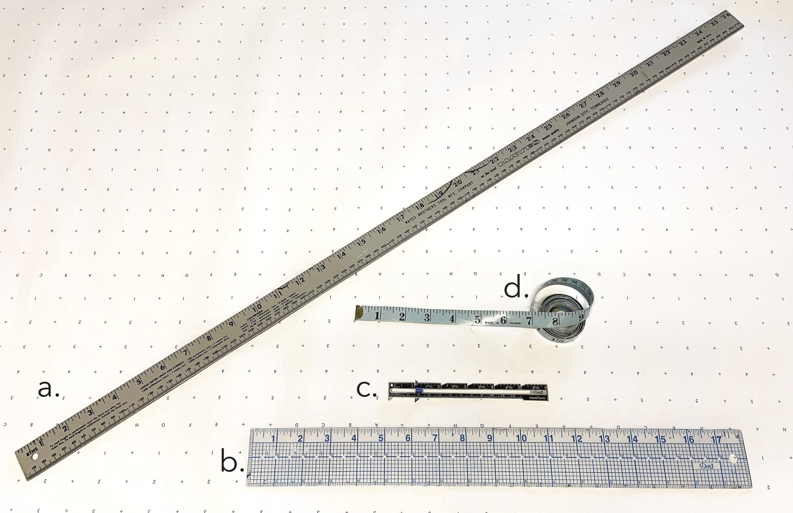 Description: A sturdy, straight measuring tool, usually made of wood or metal, measuring 36 inches (1 yard). Ideal for marking long, straight lines on fabric and checking the grainline or length of larger pattern pieces.