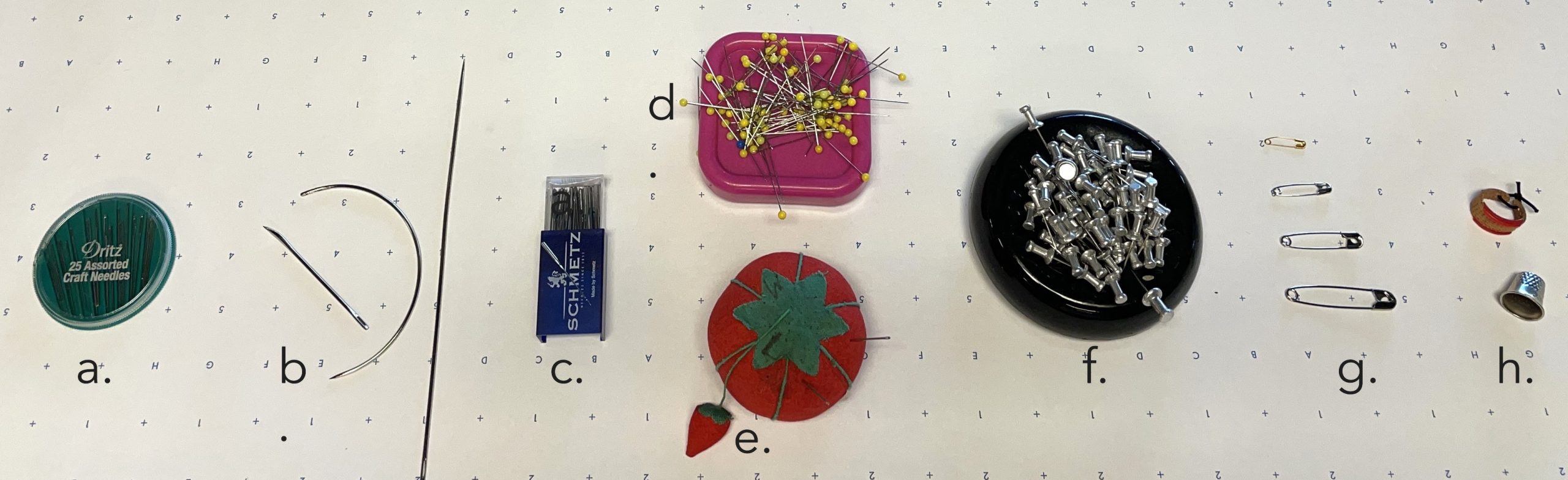 Description: Small, slender needles with a pointed end and an eye for threading. They come in various sizes and types (sharps, betweens, embroidery) to suit different hand sewing tasks like stitching hems, attaching buttons, or adding decorative details. Essential for fine work and repairs.