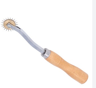 Description: A spiked wheel similar to a tracing wheel but with sharper points. Used to perforate paper patterns so that chalk or powder can be “pounced” or brushed through the holes to mark the fabric. Common in theatrical and couture costume shops for transferring detailed markings.
