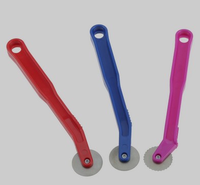 Description: A handheld tool with a circular blade that rolls along the fabric to make smooth, straight, or curved cuts. Ideal for cutting multiple layers of fabric at once, especially on a cutting mat.