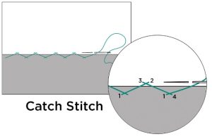 Purpose: The Catch Stitch (or Cross Stitch, as we call it in the CMU Shop) is a fast, strong stitch with minimal show on the exterior of the garment. It is commonly used for hems.