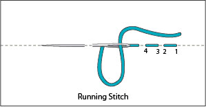 - Bring your needle up at 1, then down at 2, up at 3, and then down at 4. Continue stitching in that pattern.