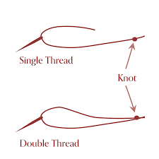 The choice to double or single thread your needle is dependent on the project. Those that require more strength, such as fasteners, use double threading. More delicate work that needs to be unobtrusive and does not take any strain might use single threading. In the costume shop, we most often use double threading.