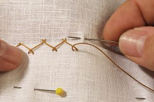 💡Tips: Use a SINGLE THREAD rather than a doubled thread. A finer – or thinner – needle may be helpful for this stitch.