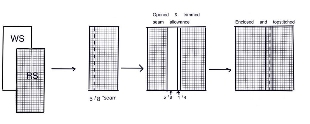 The French and Flat-Felled Seams fall under an advanced technique category known as ENCLOSED SEAMS. They enclose the the raw edges of the fabric within the seam itself to create a clean finish on both the inside and outside of a garment. This may serve a decorative and/or structural purpose and be dictated by the the fabric and the style of the garment.